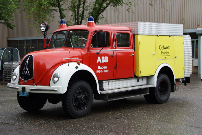 Oelwehrfahrzeug OWF der Betriebsfeuerwehr ABB Baden, als Traditionsfahrzeug von der Betriebslöschgruppe ABB Turgi/ Untersiggenthal erhalten
