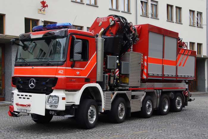 Das Fahrzeug wird sowohl für die technische Hilfeleistung als auch für das Heben von Lasten eingesetzt.