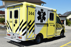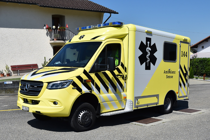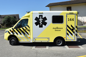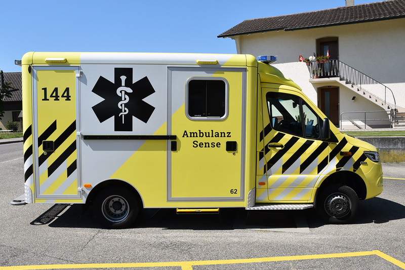 Rettungswagen RTW der Ambulanz & Rettungsdienst Sense AG, stationiert an der Rettungswache Wünnewil
