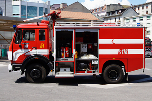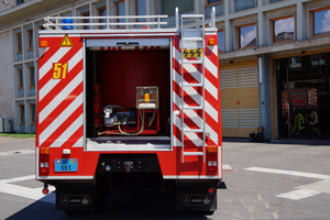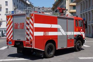 Véhicule poudre/ Trockenlöschfahrzeug TroLF 3000 des Service d’incendie et de secours (SIS) de la ville de Genève, stationiert an der Caserne principale du Vieux-Billard
