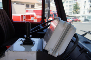 Das Trockenlöschfahrzeug 3000 des SIS Genève wurde 1991 von Vogt auf einem Mercedes-Benz 1530 AF mit Allradantrieb, Automatikgetriebe und langer Kabine mit drei Sitzplätzen aufgebaut. Die auf den Türen der Kabine angebrachte Fahrgestellbezeichnung "1428 AF" weicht von der tatsächlichen Bezeichnung "1530 AF", die auch auf dem Typschild in der Kabine eingeschlagen ist, ab. Wie und warum es zu dieser Abweichung kam ist nicht bekannt. Um in der Kabine Platz für die Bedieneinrichtung des auf dem Aufbaudach montierten Pulverwerfers zu schaffen musste die Sitzanordnung in der Kabine auf ungewöhnliche Art und Weise angepasst werden. Statt eines Einzelsitzes für den Fahrer und einer Doppelsitzbank rechts daneben sind für beide Beifahrer ebenfalls Einzelsitze verbaut. Der mittlere Sitzplatz ist wegen der davor eingebauten Bedieneinheit für den Pulverwerfer um 90° nach rechts gedreht und mit einem zusätzlichen Haltegriff aus Metall versehen, um der darauf sitzenden Person während der Fahrt mehr halt zu geben. Durch die Anordnung in der Mitte der Kabine lässt sich die Steuerung für den Pulverwerfer problemlos von allen drei Sitzplätzen aus erreichen. Von der Bedieneinrichtung aus lässt sich die Pulverlöschanlage scharf schalten und nach dem Einsatz auch spülen. Zentraler Bestandteil der turmartigen Bedieneinrichtung ist der Joystick über den der Werfer gesteuert werden kann. Über eine kreis- und eine halbkreisförmige Anzeige mit LEDs lässt sich die horizontale und vertikale Ausrichtung des Werfers einfach ablesen, um ein Ausrichten zu vereinfachen.