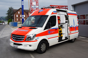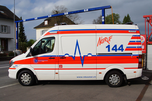 Rettungswagen (RTW) des Rettungsdienstes Seetal im Kanton Luzern, stationiert an der Rettungswache in Hochdorf.