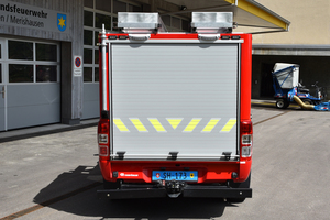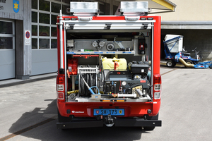 Auf das nötigste beschränkt sich die Beladung des KTLF, steht in den drei Geräteräumen doch nur eine überschaubarer Raum zur Verfügung. Nennenswert sind zwei Pressluftatmer, eine Wärmebildkamera, ein Feuerlöscher mit Light Water als Kleinlöschgerät und zwei Kunststoffkisten mit Gerät zur Verkehrsabsicherung.