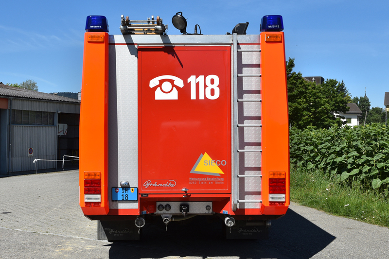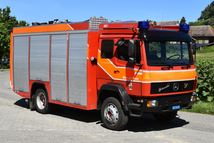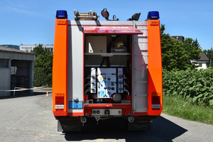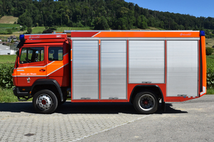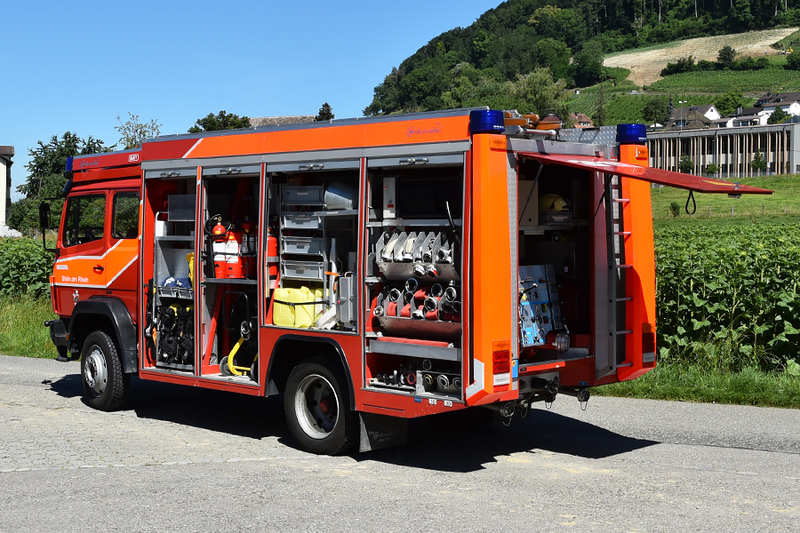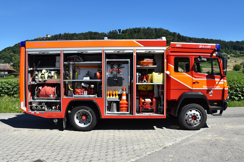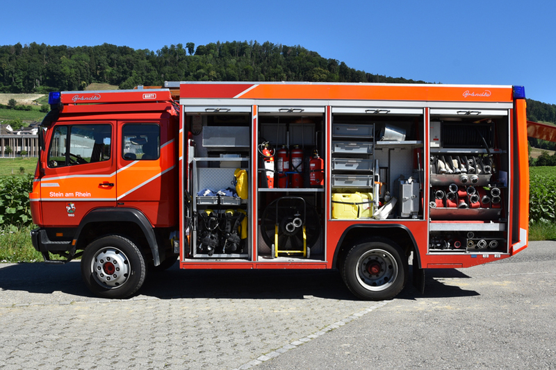 Stein am Rhein auf einem Mercedes-Benz 1224 AF aufgebaut. Es ist das zentrale Fahrzeug der Wehr für die Brandbekämpfung und dafür auch entsprechend üppig ausgestattet. Die Komponenten für die