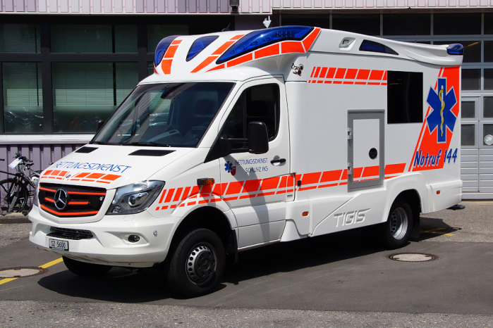 Rettungswagen (KTW) des privaten Rettungsdienstes Rettungsdienst Schwyz AG aus Seewen im Kanton Schwyz.