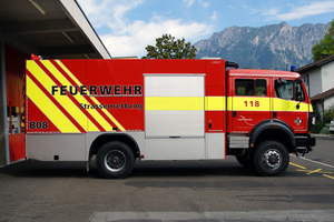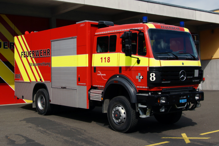 Im Jahr 1998 erhielt die Feuerwehr Buchs ein neues Ölwehrfahrzeug für den bei ihr stationierten Armeelöschzug. Das Fahrzeug war zusammen mit weiteren baugleichen Fahrzeugen von Geser und Brändle auf einem Mercedes-Benz 2038 A aufgebaut worden. Als der in Buchs stationierte Armeelöschzug zusammen mit den anderen 13 Zügen in der Schweiz Anfang der 2000er aufgelöst wurde, übernahm die Stadt Buchs den Fuhrpark des Zuges für seine eigene Feuerwehr. Diese hatte die Fahrzeuge zwar auch schon vorher besetzt und auch im Einsatz genutzt, gehört hatten die Fahrzeuge zu dieser Zeit aber noch der Schweizer Armee. Das ohnehin schon mit Ausrüstung für die Technische Hilfeleistung beladene Ölwehrfahrzeug wurde von der Feuerwehr Buchs nach dem Besitzerwechsel vollends zum Straßenrettungsfahrzeug umgebaut. Die Ölwehrbeladung zur Beseitigung von Mineralölschäden wich einer umfangreichen Beladung für die Technische Hilfeleistung. Wo nötig wurde das Fahrzeug in Eigenleistung den neuen Bedürfnissen entsprechend angepasst, umgebaut und nachgerüstet. Beispielsweise wurde am Fahrzeugheck eine Führungslichtanlage Horizont Mulitlux 5 LED montiert. Später wurde das Fahrzeug auch im neuen, auffälligen Design der Feuerwehr Buchs beklebt. Geblieben sind aber auf den Kabinentüren die alten Logos der Armeelöschzüge. Geblieben ist auch der Funkrufname des Fahrzeuges: B08. Diesen Rufnamen trug das Fahrzeug schon in seiner Zeit als Ölwehrfahrzeug des Armeelöschzuges Buchs.