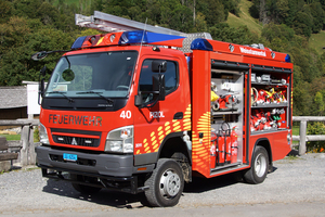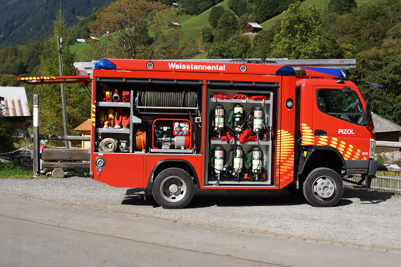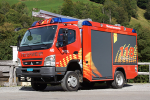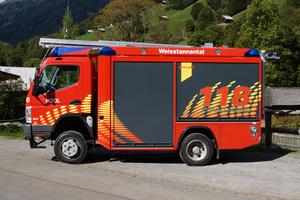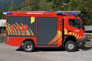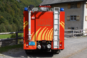 Tanklöschfahrzeug TLF der Feuerwehr Pizol, stationiert im Depot Weisstannen