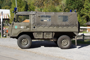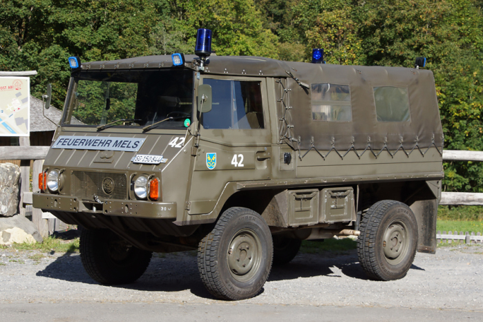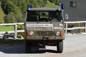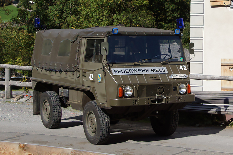 weißt auch eine weitere Etappe im Lebenslauf des Pinzgauers aus. Zunächst gehörte er zum Fuhrpark der Feuerwehr Mels und kam nach deren Zusammenschluss mit mehreren Nachbarwehren zur Feuerwehr Pizol