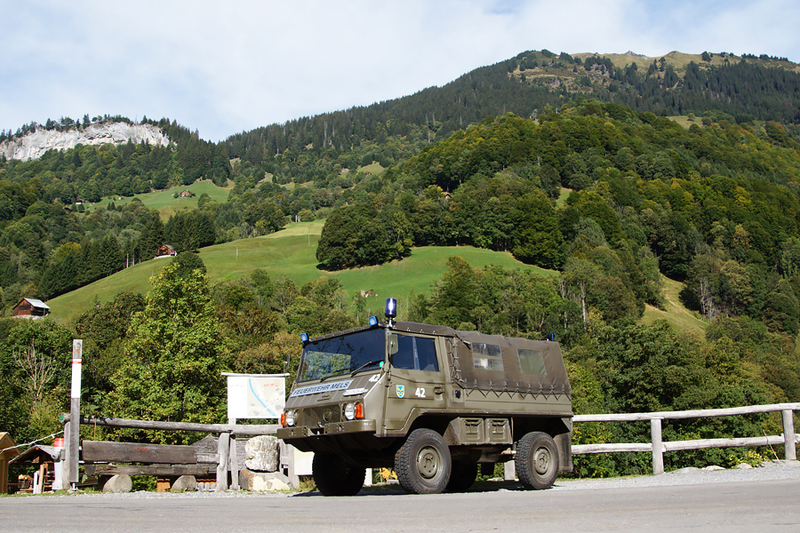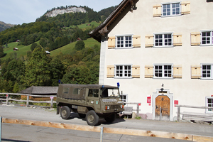 Einsatz. Von dort übernahm ihn die Feuerwehr Mels und rüstete ihn einfach und zweckmäßig zum Mannschaftstransporter für das im gebirgigen Weisstannental auf über 1.000 m gelegene Depot um. Neben