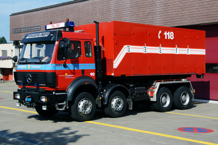 Für die Ölwehr, insbesondere auf dem Bodensee, beschaffte das Kanton Thurgau 1993 ein Wechselladerfahrzeug sowie zwei Abrollbehälter und stationierte das komplette System bei der Stützpunktfeuerwehr in der Hafenstadt Romanshorn. Beim Wechselladerfahrzeug handelt es sich um einen vierachsigen Mercedes-Benz 3238 aus der in der Schweiz unter dem Namen Powerliner vertriebenen Schweren Klasse SK88. Der große Mercedes besitzt zwei gelenkte Vorder- und zwei ungelenkte Hinterachsen sowie eine Wechselladereinrichtung von Multilift. Für Bergungsaufgaben wurde an der Front eine elektrische Seilwinde von Warn montiert.