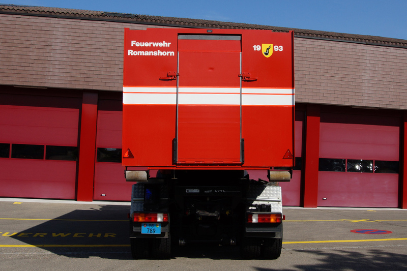 Interessanter Weise wird der schwere Mercedes-Benz 3228 von der Feuerwehr Romanshorn nicht etwa als Wechselladerfahrzeug bezeichnet, sondern trägt mit dem Abrollbehälter-Rüst die Bezeichnung Rüstfahrzeug und mit einem der beiden Abrollbehälter für die Ölwehr die Bezeichnung Ölwehrfahrzeug. Normalerweise ist immer der Abrollbehälter-Rüst für die Technische Hilfeleistung aufgesattelt und das Fahrzeug als Rüstfahrzeug im Einsatz.